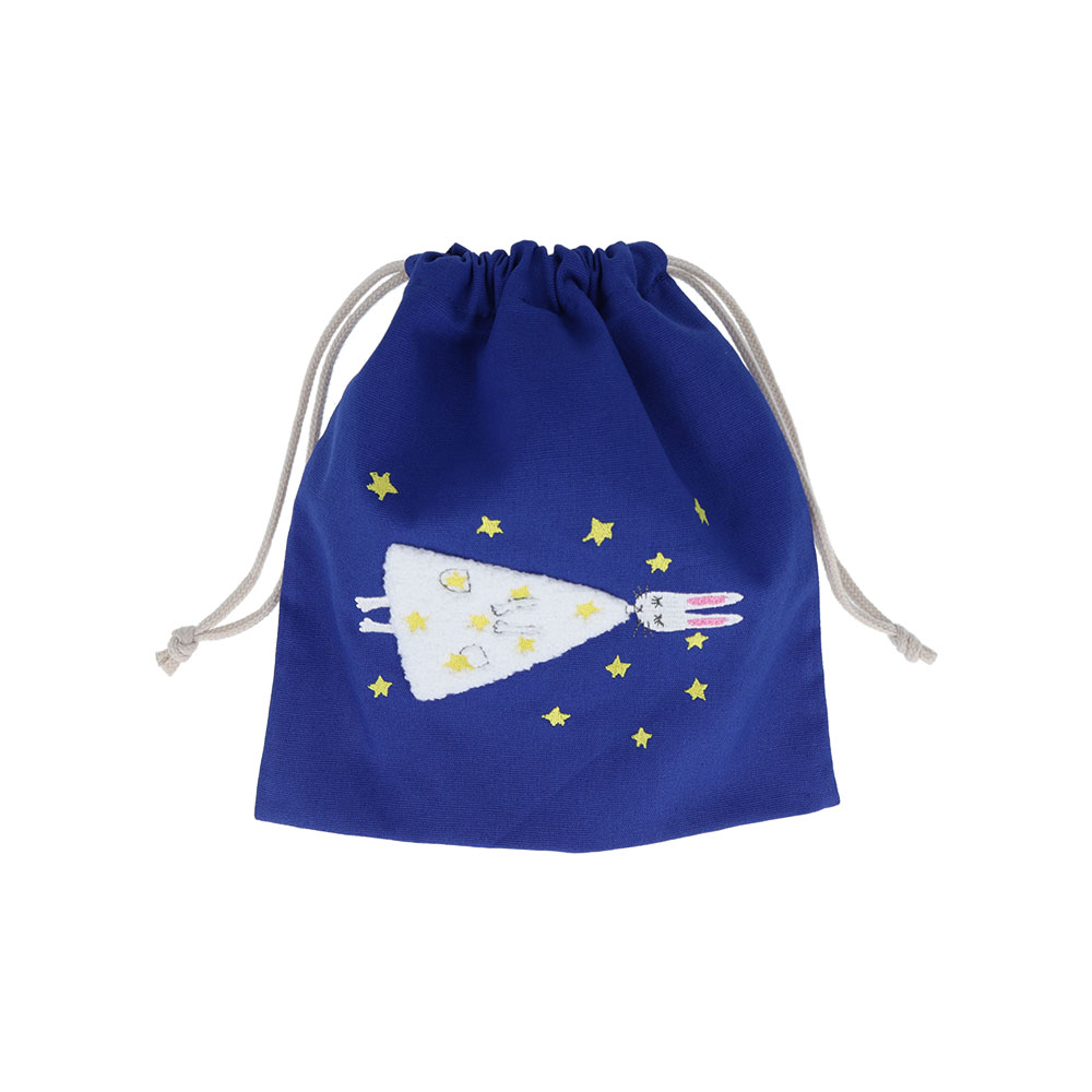 輝くお星様モチーフが映える、ネイビーの巾着。