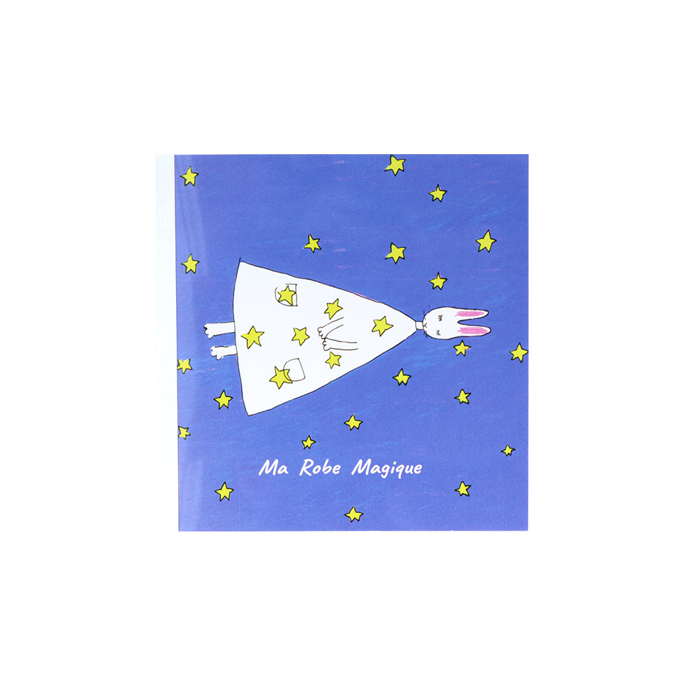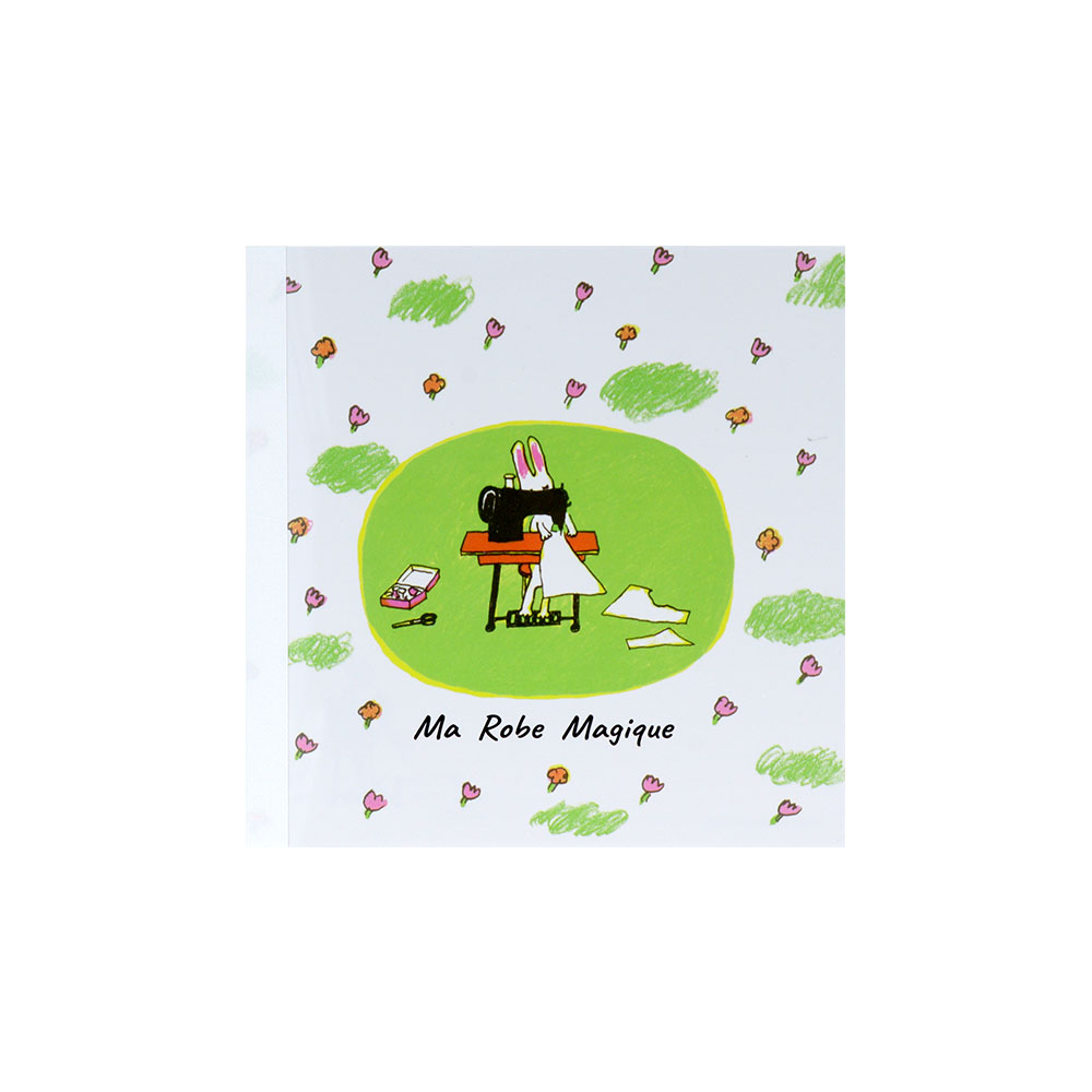 裏面には、完成したワンピースを着てお花畑に行く姿があしらわれています。