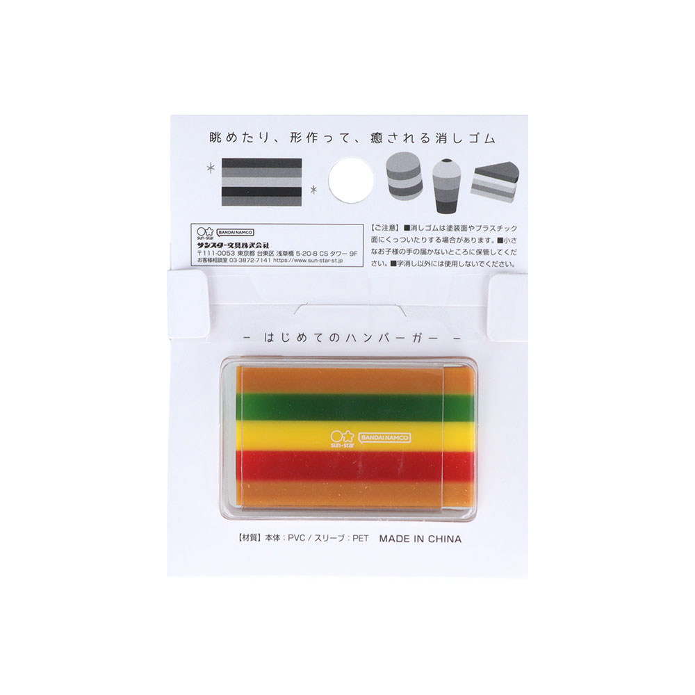 バンズに具材をサンドした、初めて食べたハンバーガーのようなカラーの消しゴム。