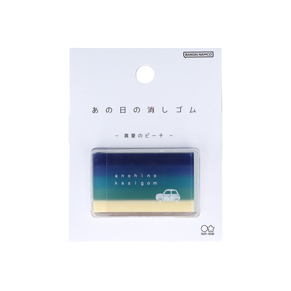 海の深いブルーと砂浜のカラーがグラデーションする「真夏のビーチ」をイメージした消しゴム。