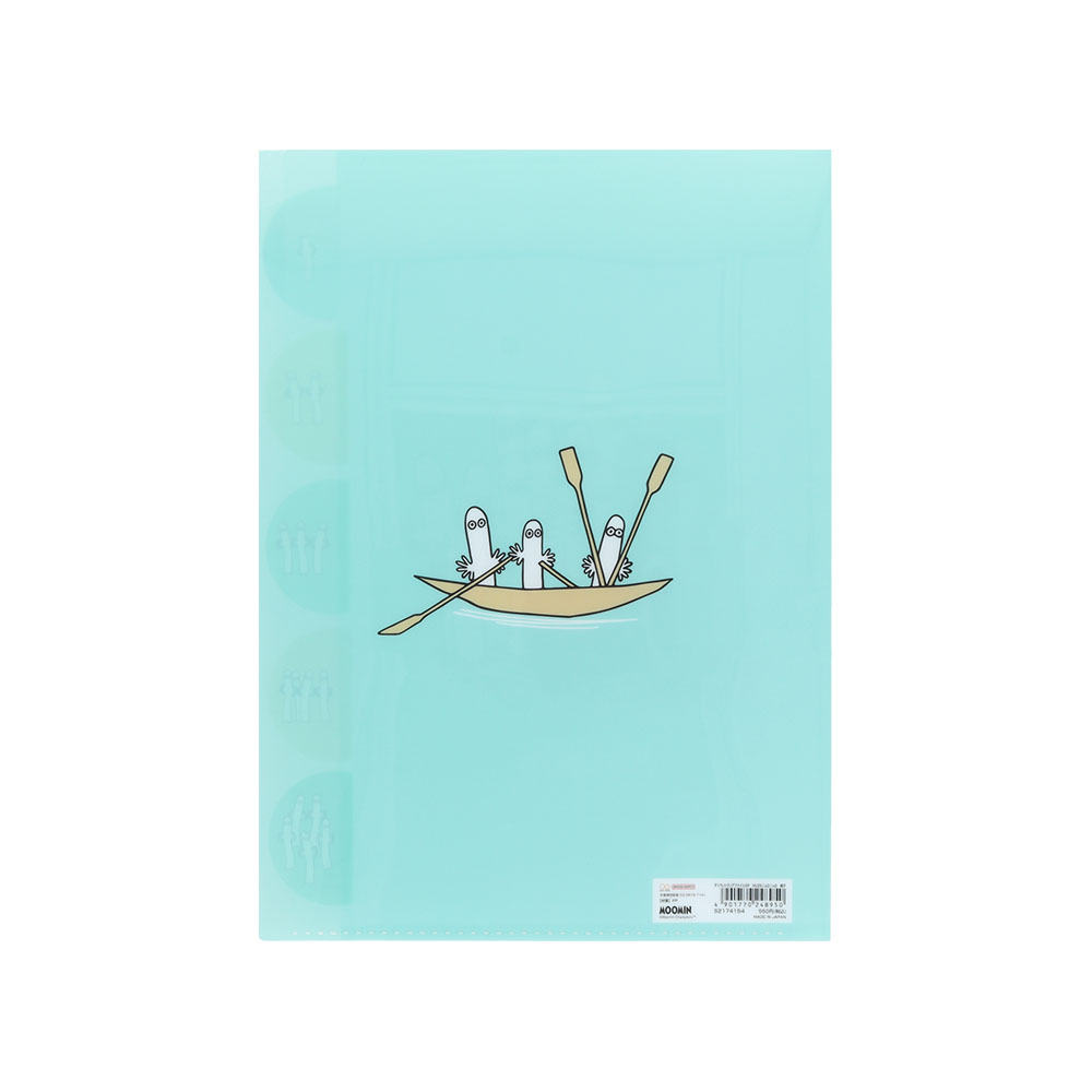 インデックス部分に「ムーミン」や「スナフキン」「リトルミイ」たちを描いたチラシデザイン。