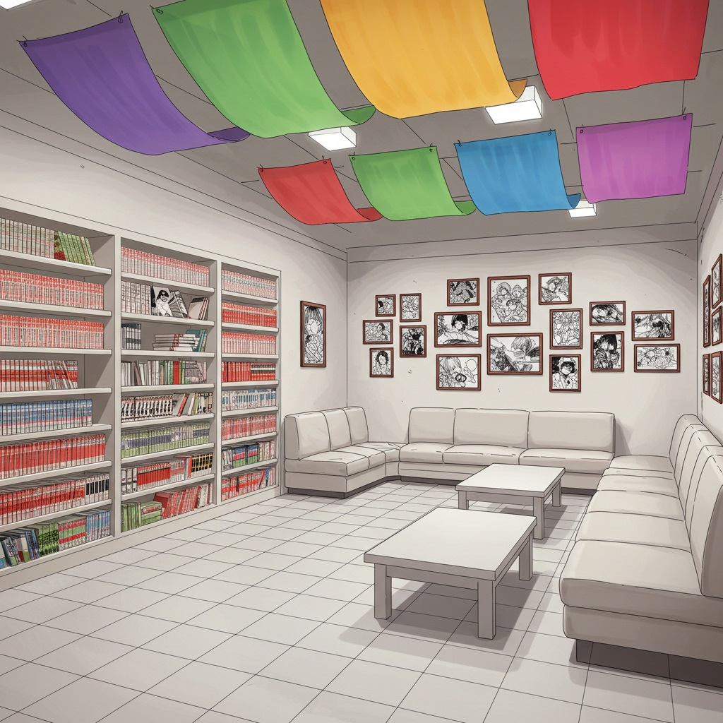 壁面には人気キャラクターのイラストをあしらったアートパネルを展示し、マンガの世界観を味わえる空間に仕上げられています☆
