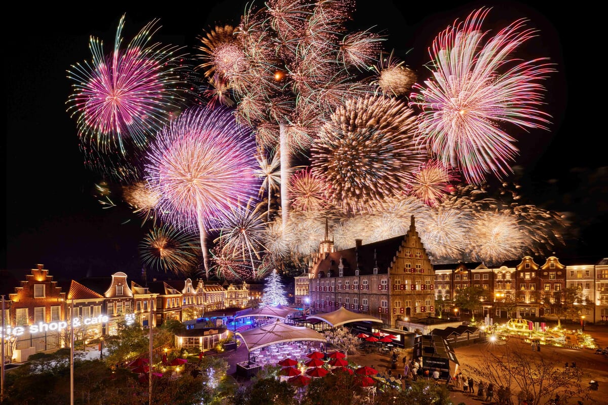 ヨーロッパの街並みと美しいイルミネーションが創り出すハウステンボスならではの異世界の夜空に、冬の華が咲き乱れます!