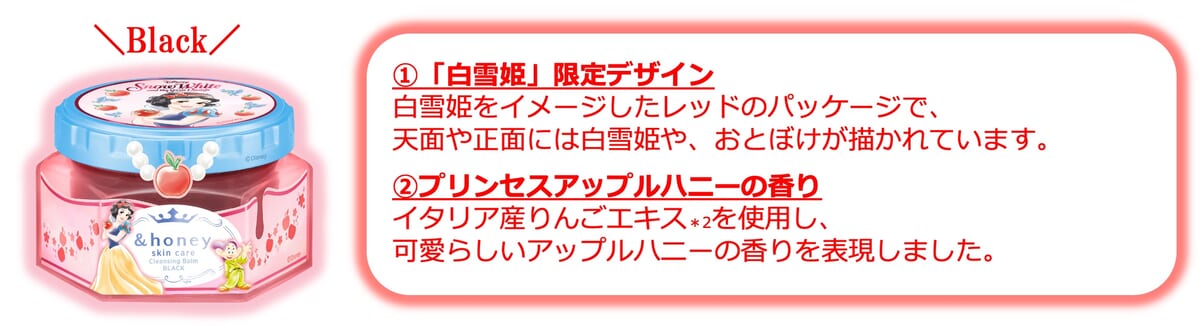 メイクをしっかり落として、使い心地サッパリの「ブラック」は、ディズニープリンセス「白雪姫」のデザイン。