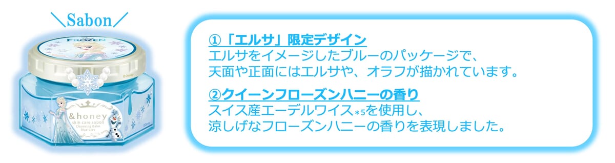 サッパリした使い心地で黒ずみケアを叶える「サボン」は『アナと雪の女王』の「エルサ」デザイン。