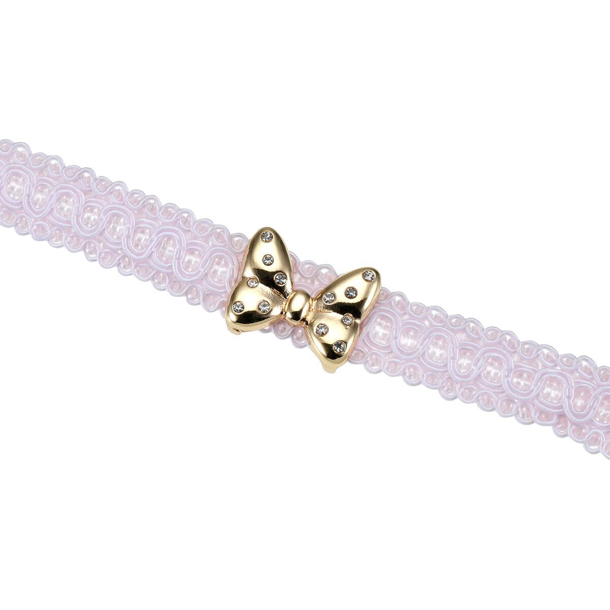 ダイカットフェイスデザインの帯飾りは、シルバーカラーのきらめきにピンク色のリボンが愛らしさを添えています。