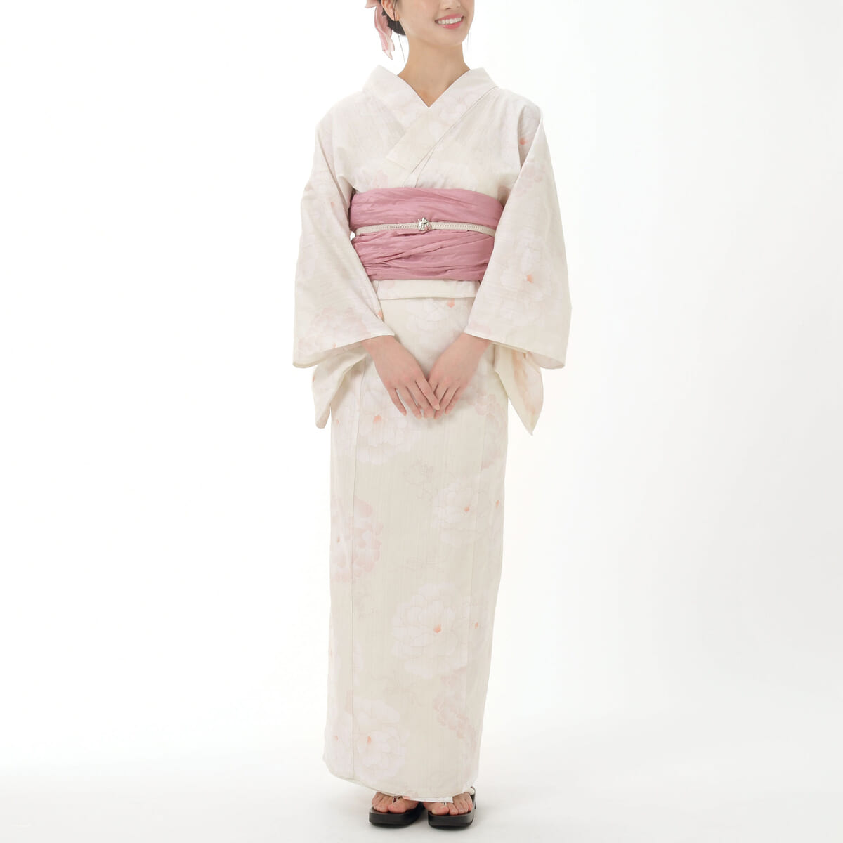 淡い色味に仕上げられた帯が、簡単な結び方でも、くしゅっとふんわり華やかに仕上がるのも魅力です。