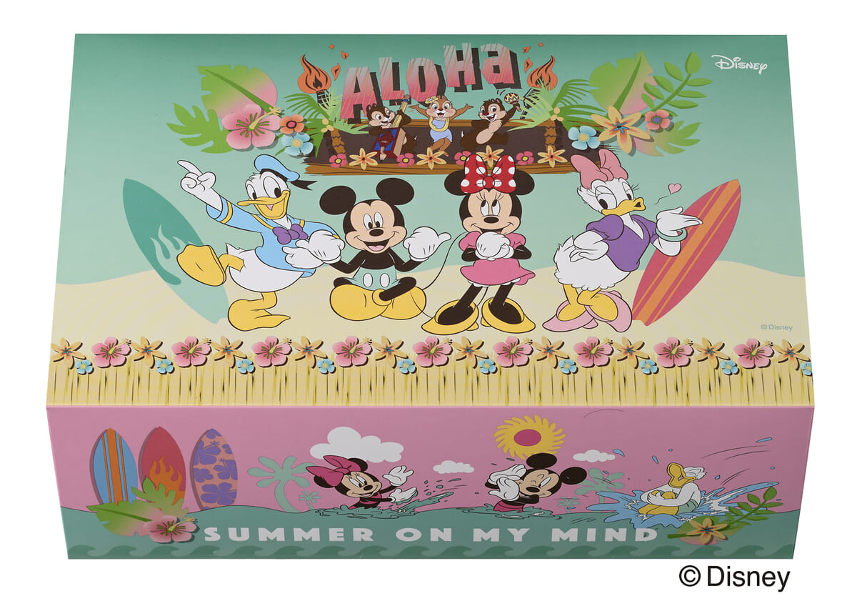 専用のボックスにも夏を楽しむ「ミッキー&フレンズ」たちをプリント。
