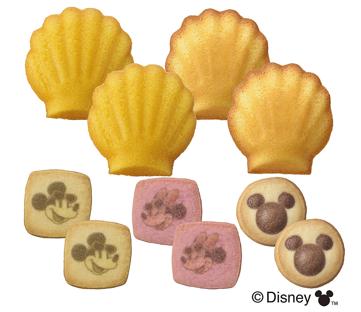 「ミッキー&フレンズ」が海で楽しく過ごす様子をデザインしたBOXに、ふんわり、しっとり食感のバターとマンゴー味のマドレーヌと、クッキー2種をアソート。
