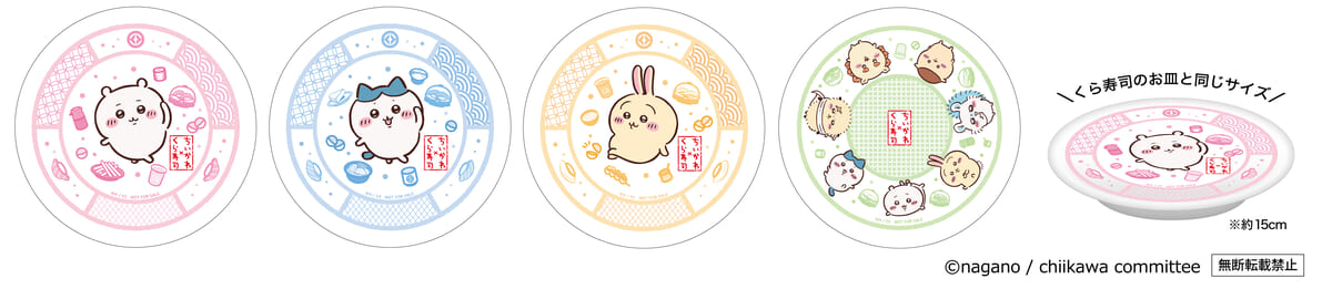 7月25日からの第3弾では「ちいかわ」たちをデザインしたすし皿をプレゼント。