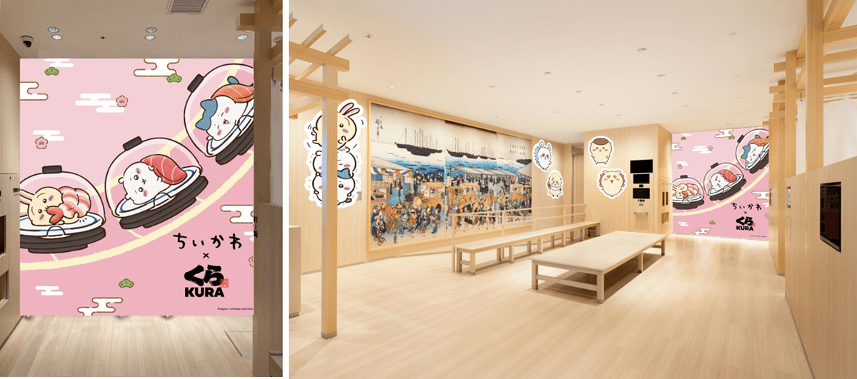 「ちいかわ」「ハチワレ」「うさぎ」がお寿司になってゲストお出迎えするなど、フォトスポットとしても楽しめます。