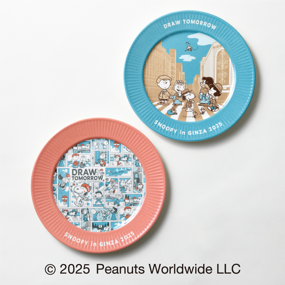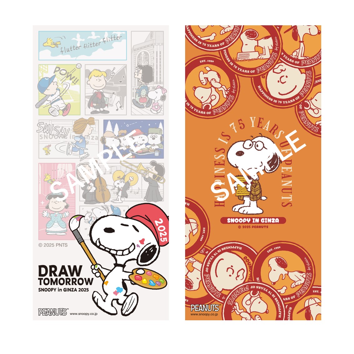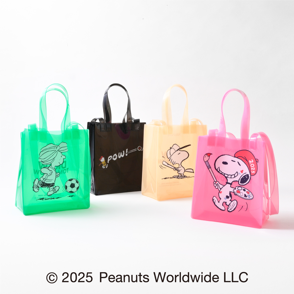 表面はカラーによって異なる「スヌーピー」と仲間たちが、後面は2025年のテーマ「DRAW TOMORROW」の文字がデザインされてます。