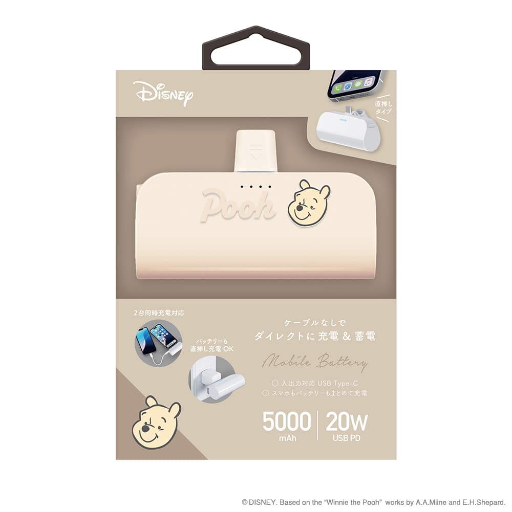 USB Type-C 直挿しモバイルバッテリー 5,000mAh(くまのプーさん)