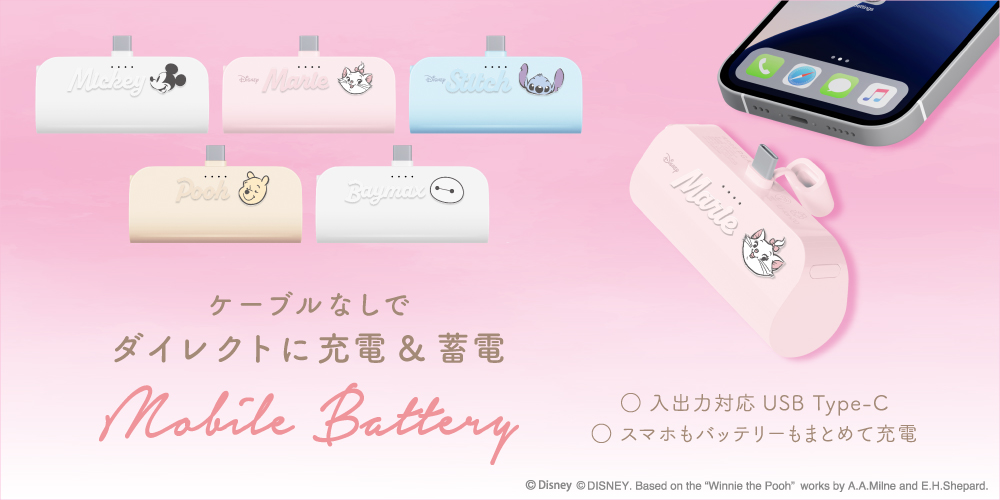 USB Type-Cポートを搭載した、ディズニーデザインのモバイルバッテリー。