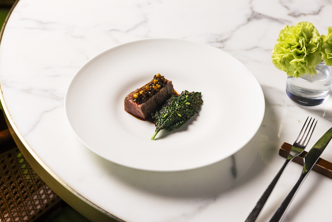 ・能登牛サーロイン、カーボロネロ、黒にんにく - プレデザート