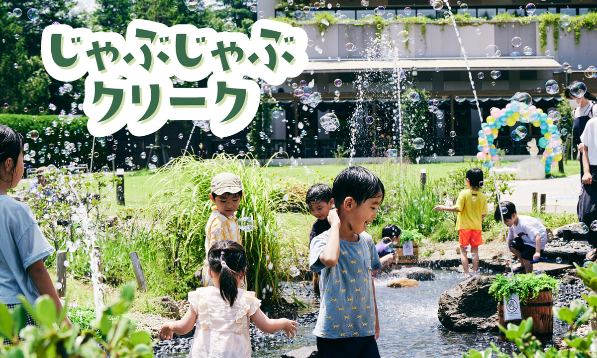やわらかな水の流れ、キラキラと輝くシャボン玉、太陽の光に包まれながら、お子さんたちが笑顔ではしゃぐ姿があちこちに広がります。