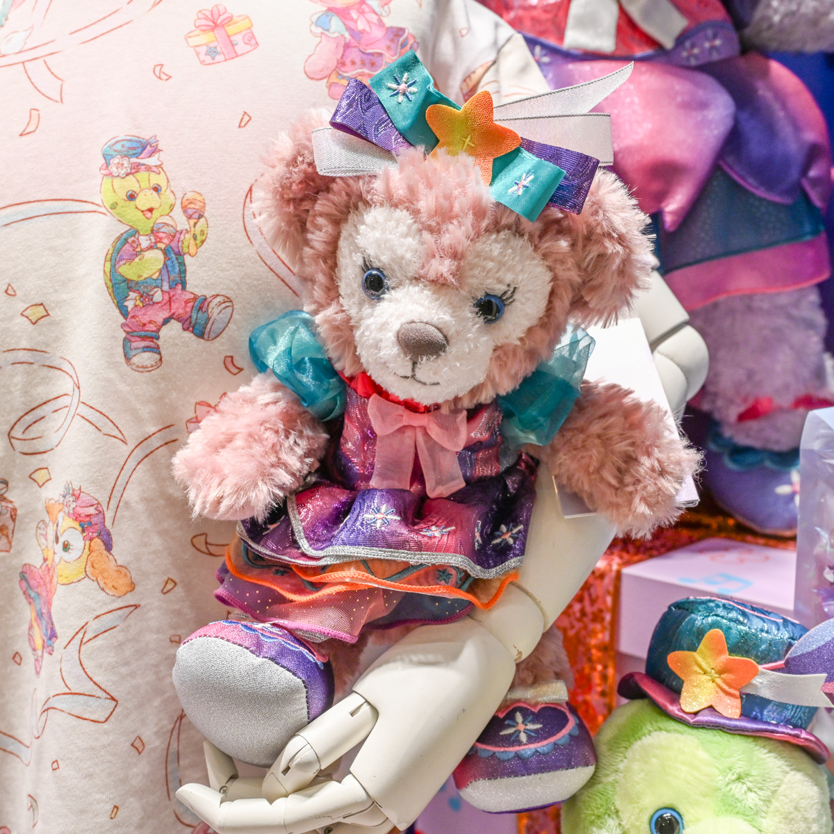 ダッフィー、シェリーメイ、ジェラトーニ、ステラ・ルー、クッキー・アン、オル・メル、リーナ・ベルが、パーティー衣装で集合する「グランド・セレブレーション ダッフィー&フレンズ」