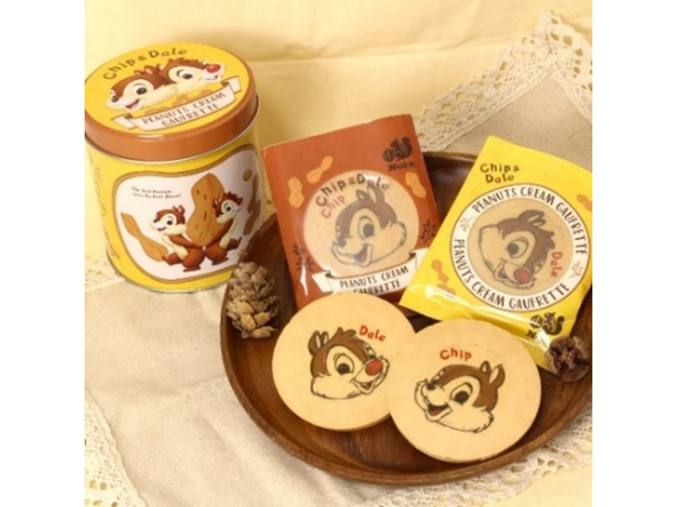 パッケージや缶はもちろん、ゴーフレットにも「チップ」と「デール」を描いたこだわりスイーツです。