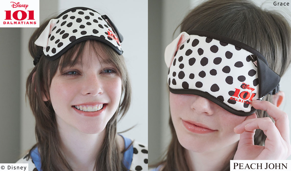 アイマスクは『101匹わんちゃん』をイメージしたダルメシアン柄に加え、白黒の耳までつけた、映え度満点のデザイン。