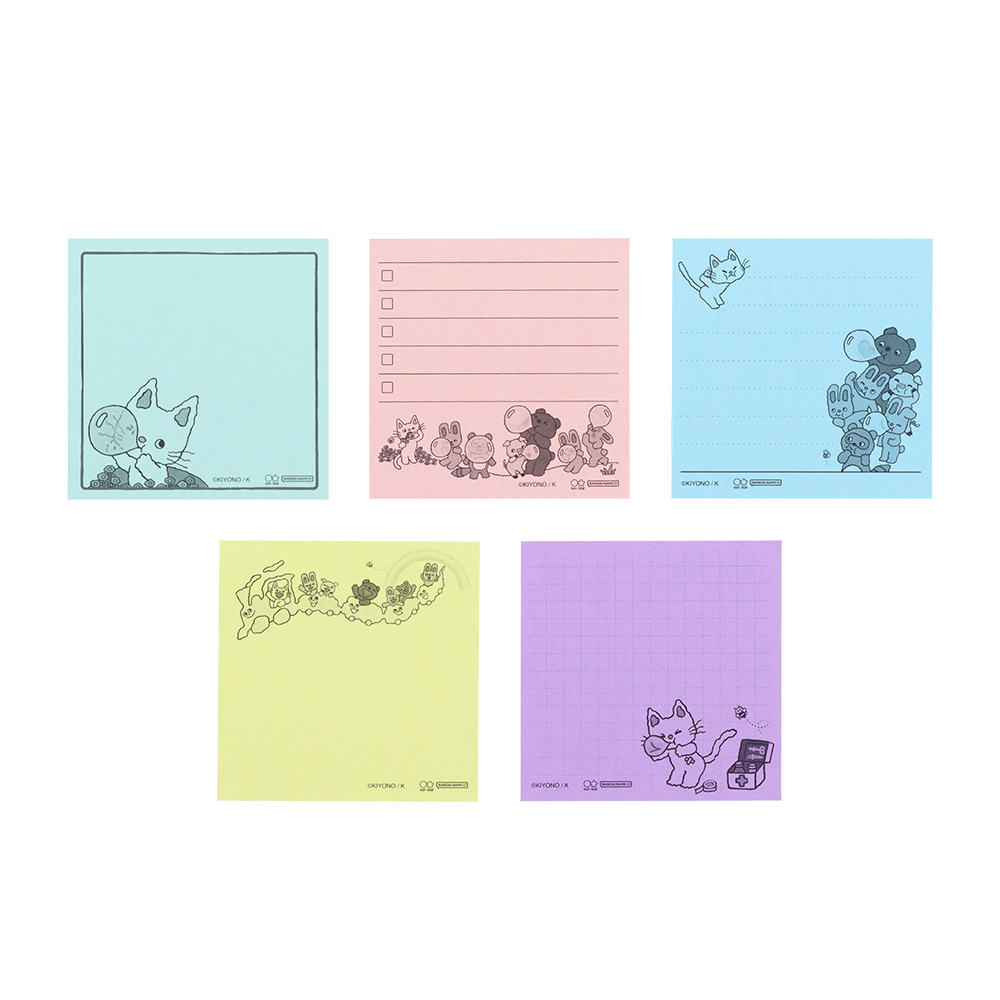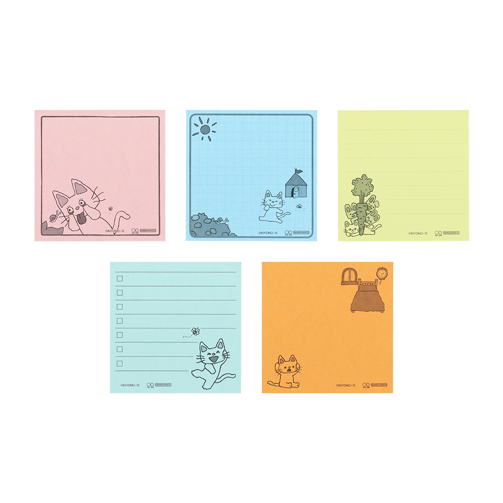 柄ごとに色が違う、5種類の付箋をセット。