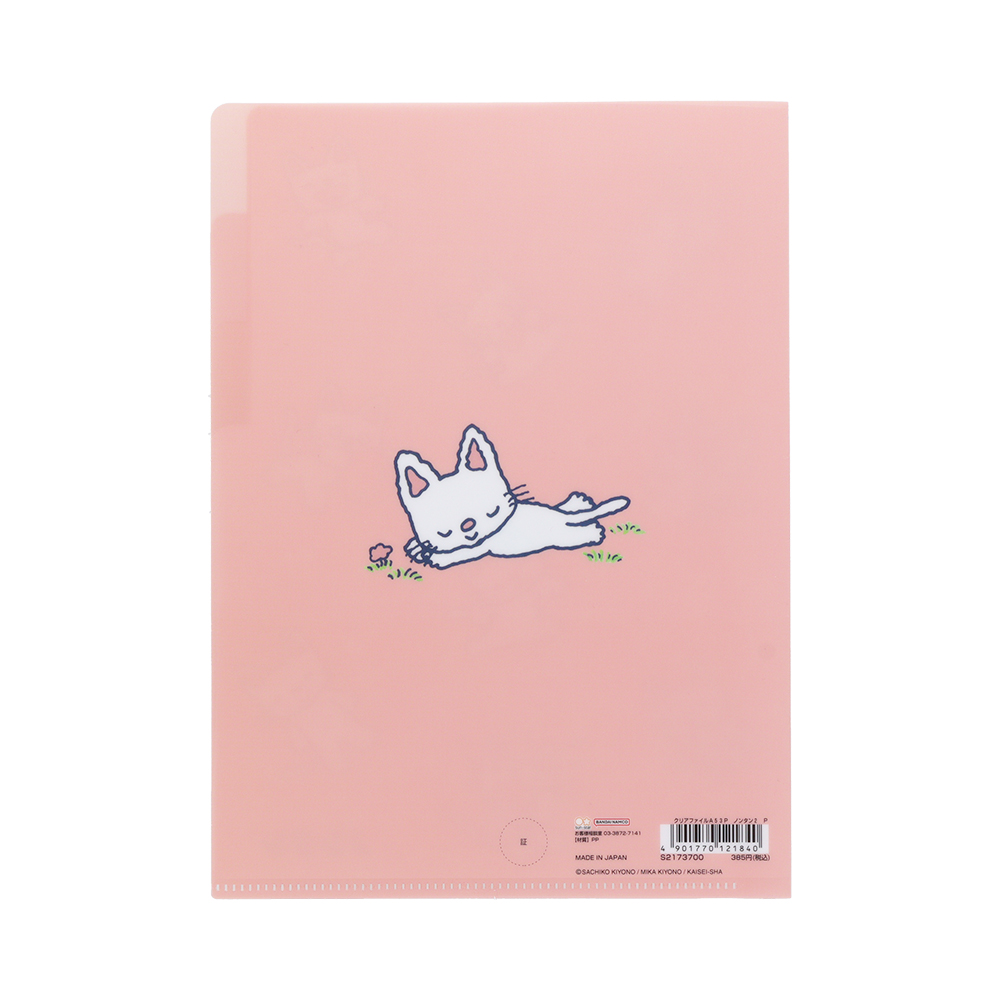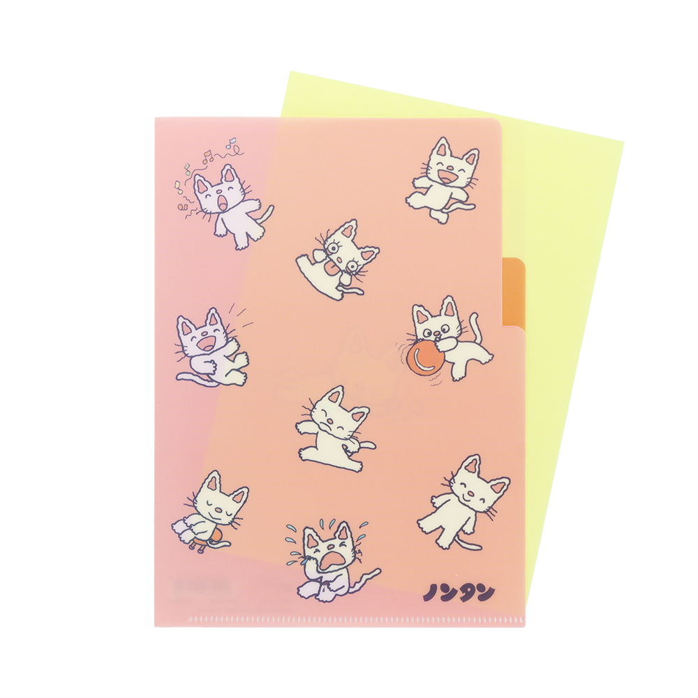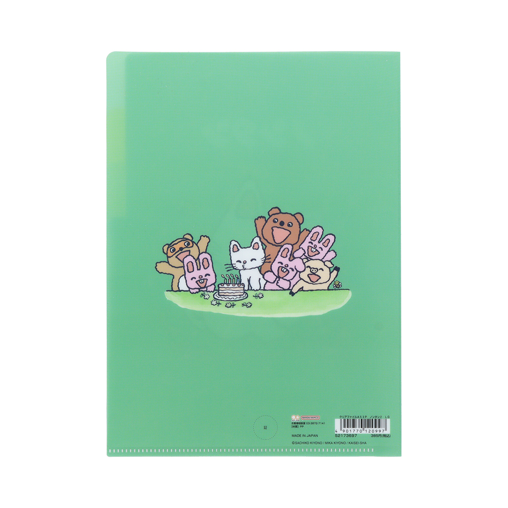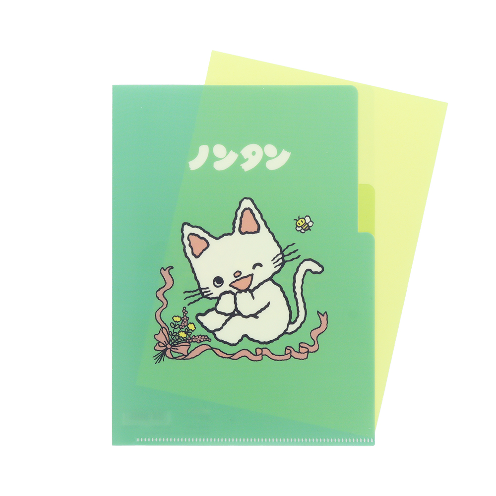 ライトグリーンのクリアファイルに、笑顔の「ノンタン」がかわいいデザイン。