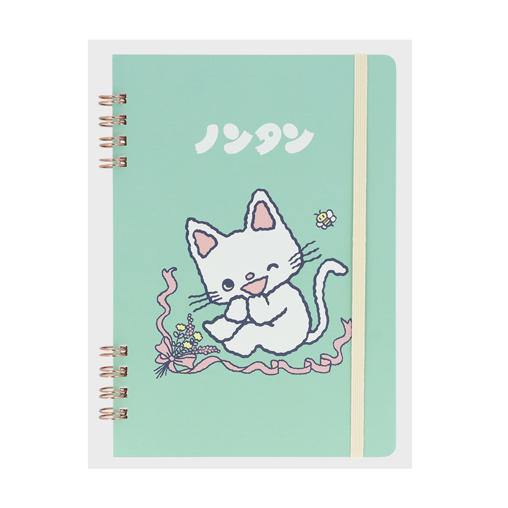 淡いグリーンの背景に、キュートな「ノンタン」の姿をあしらったWリングノート。