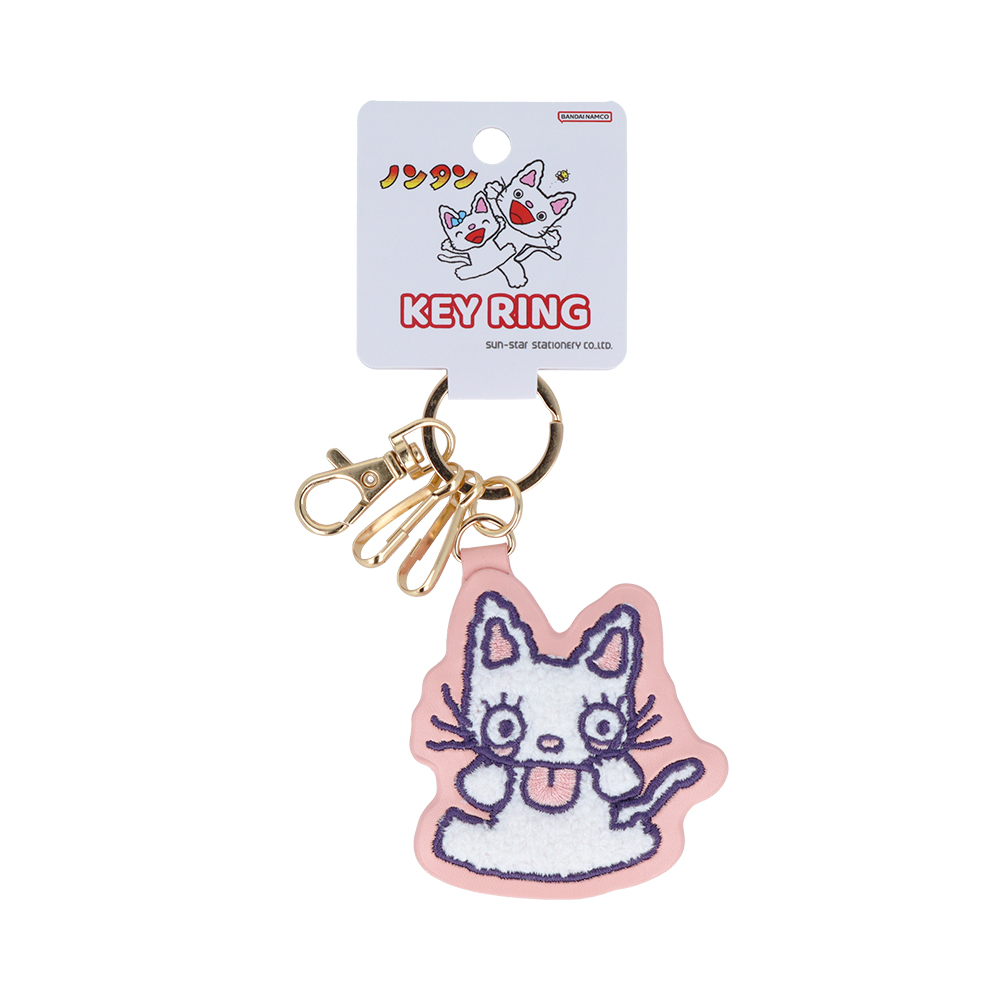サガラ刺繍キーリングは、思いっきりあかんべーをする「ノンタン」のデザインも。