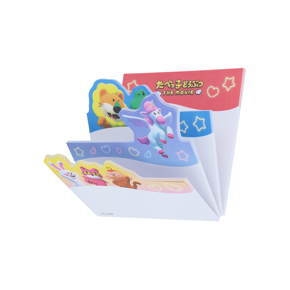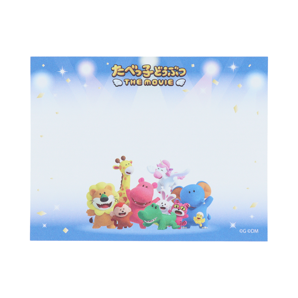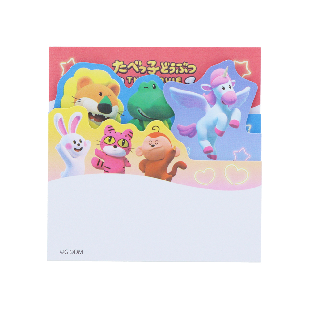 メモにはスポットライトを浴びるどうぶつたちの集合アートが使用されています。