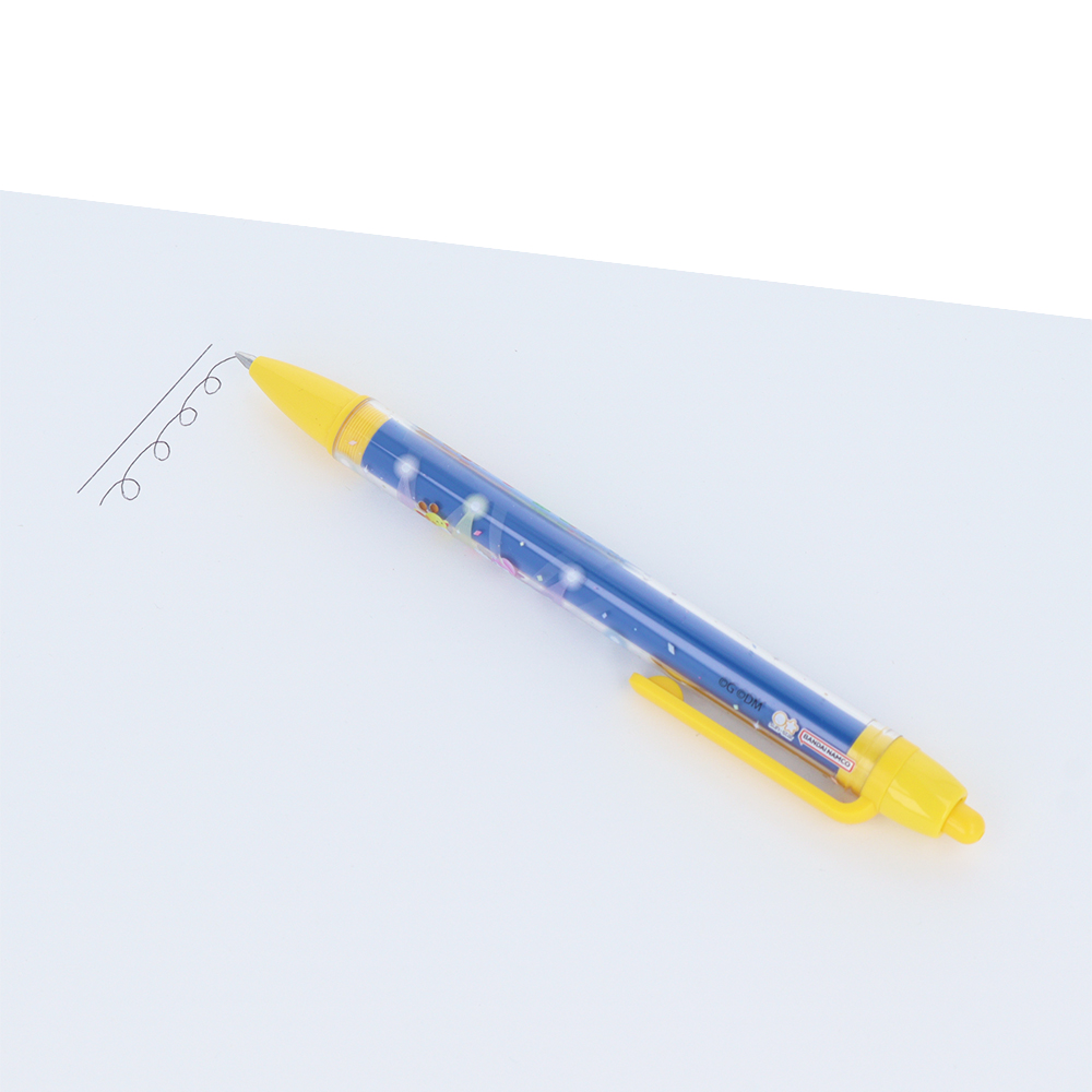 イエローとブルーを基調にした、ポップなカラーのボールペン。