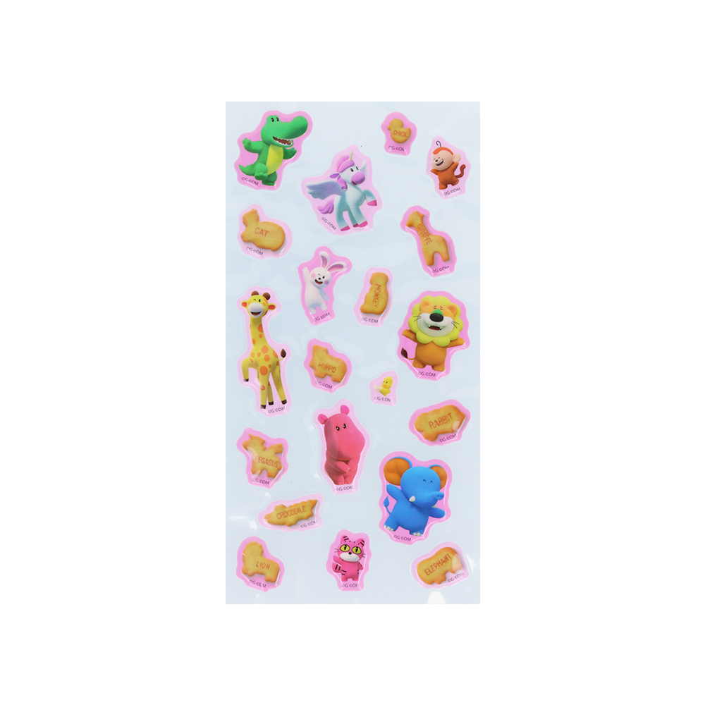 様々なポーズをとるたべっ子どうぶつたちをデザインしたぷっくりシール。