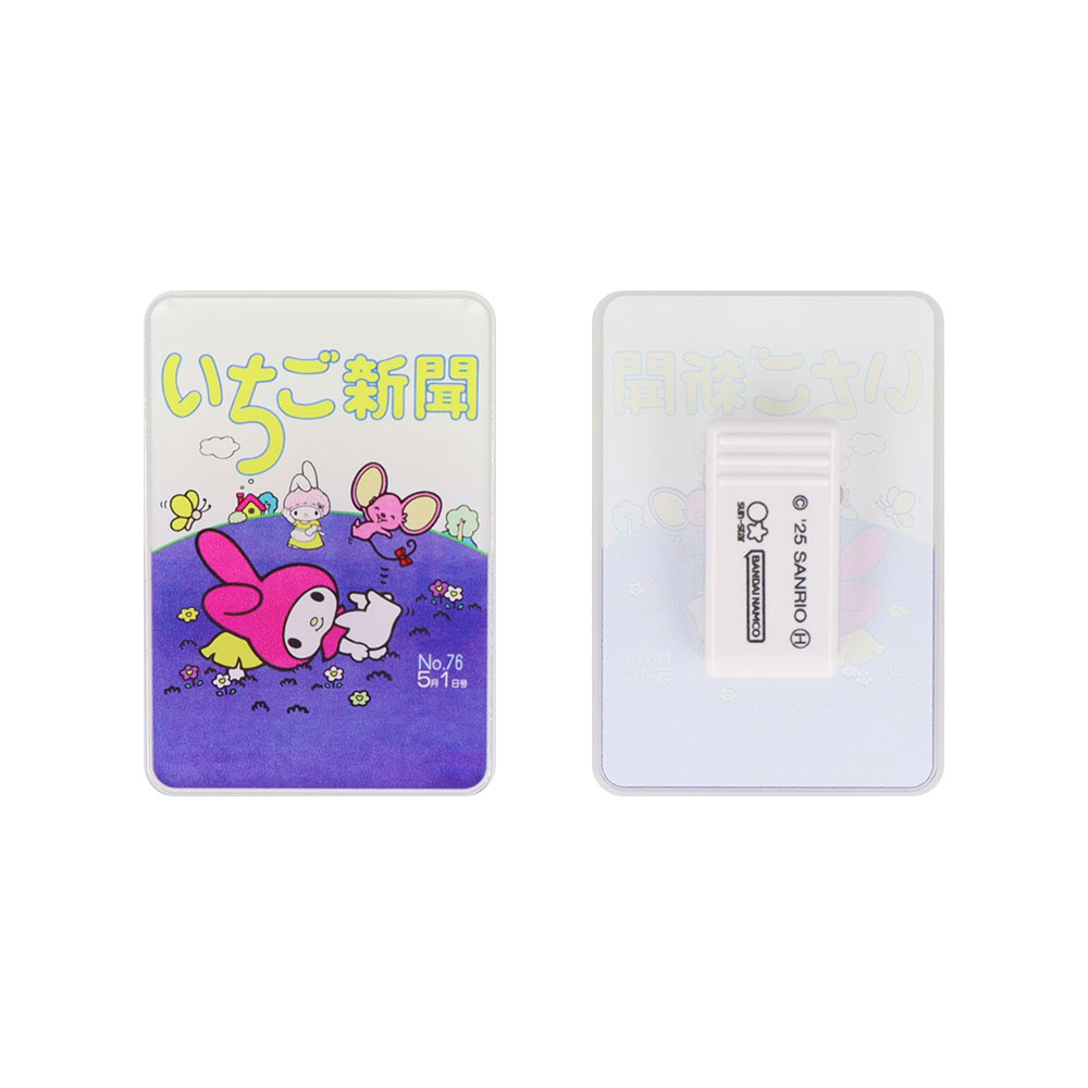 いちご新聞の1990年代アートを使用したアクリルクリップ。