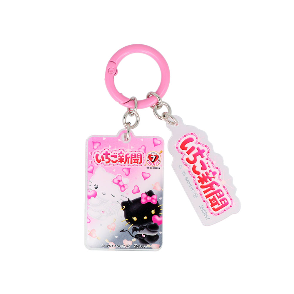 いちご新聞のロゴチャームにもリボンをあしらった「チャーミーキティ」