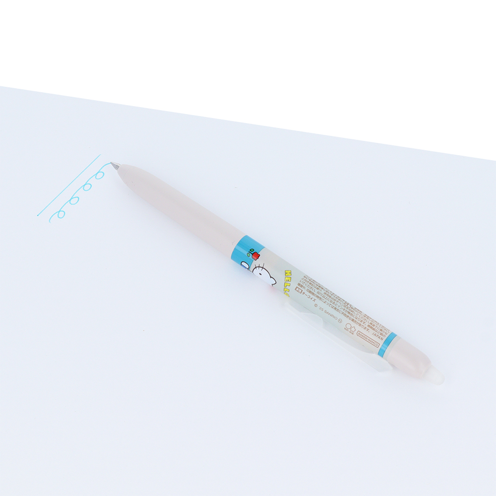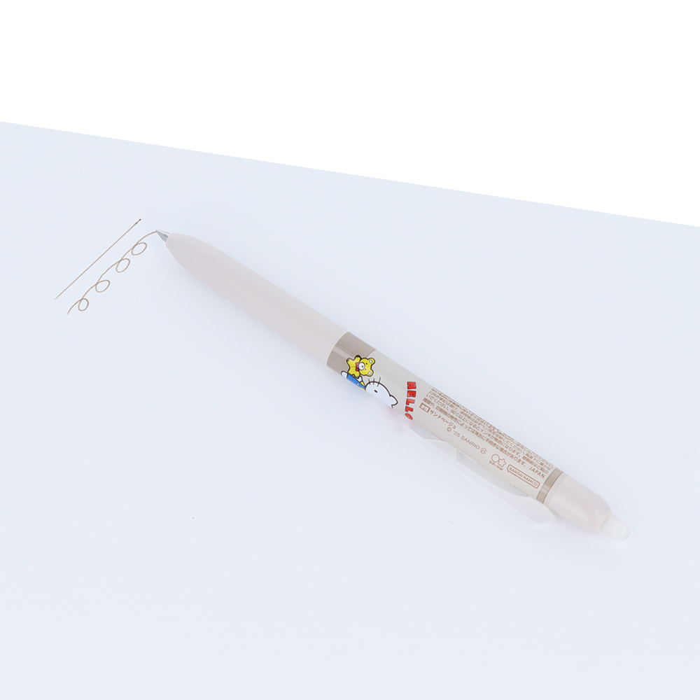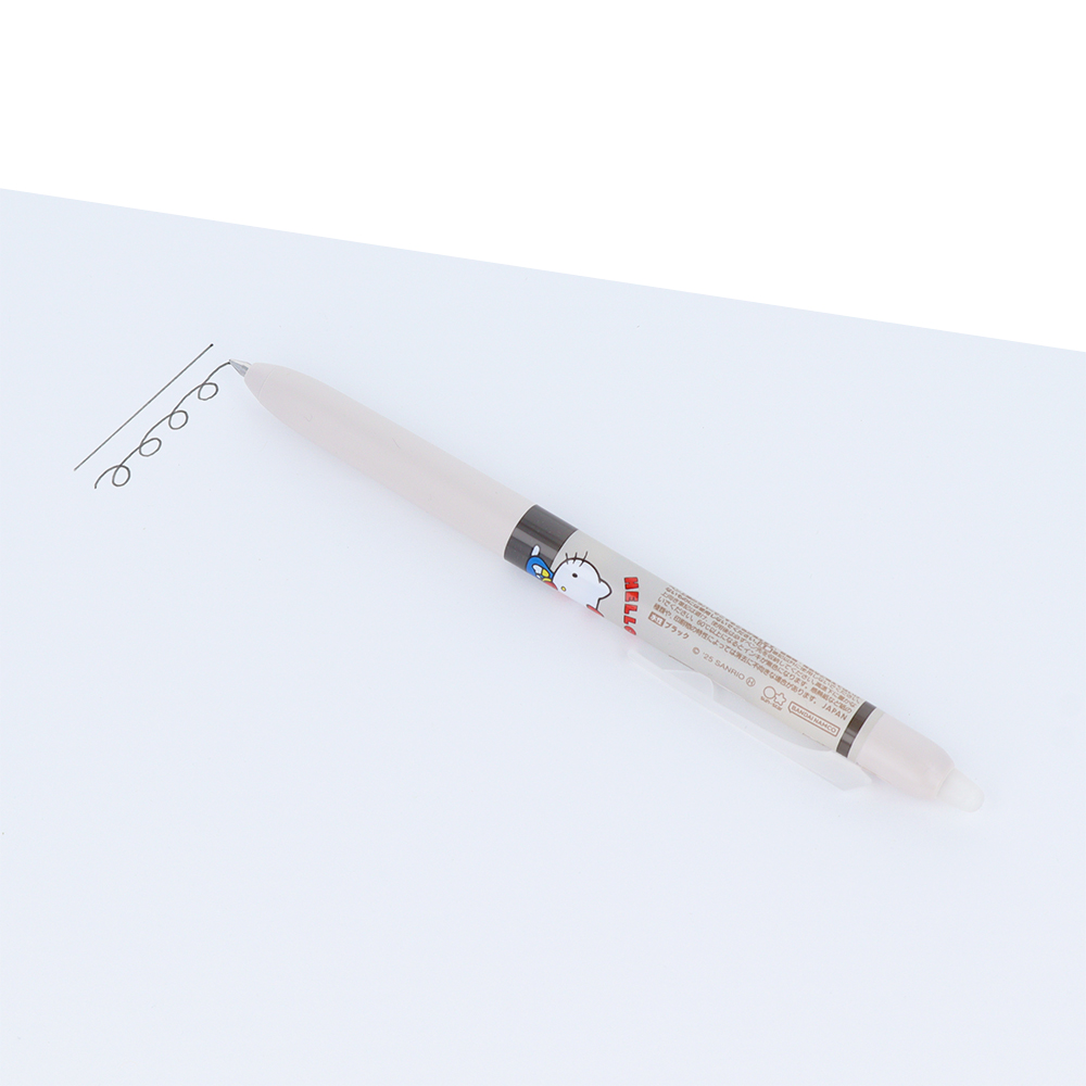 カラーごとに異なる「ハローキティ」のイラストが可愛い、カラフルなフリクションボールペン。