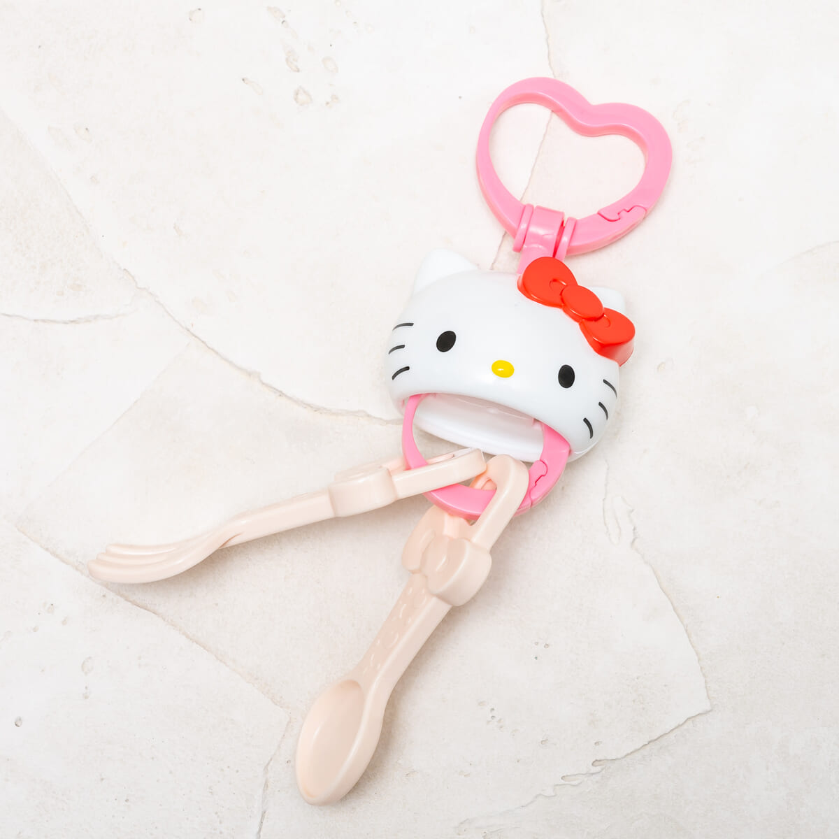 ハート型クリップで止めることができ、「ハローキティ」のお顔がチャームのようにあしらわれています☆
