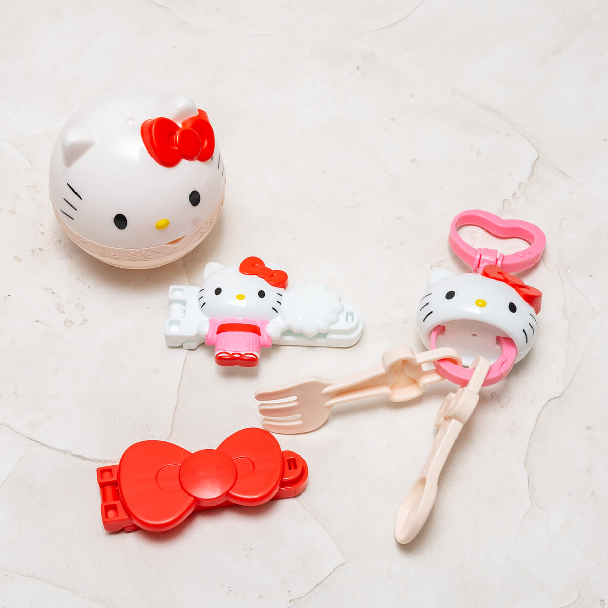お皿や小物入れとして利用でき、サングラスは「ハローキティ」の顔につけたり、中に収納したりすることができます。