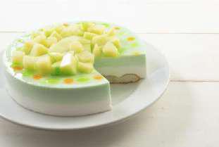 メロンとココナッツのムースを重ねた、涼やかな2層仕立て。
