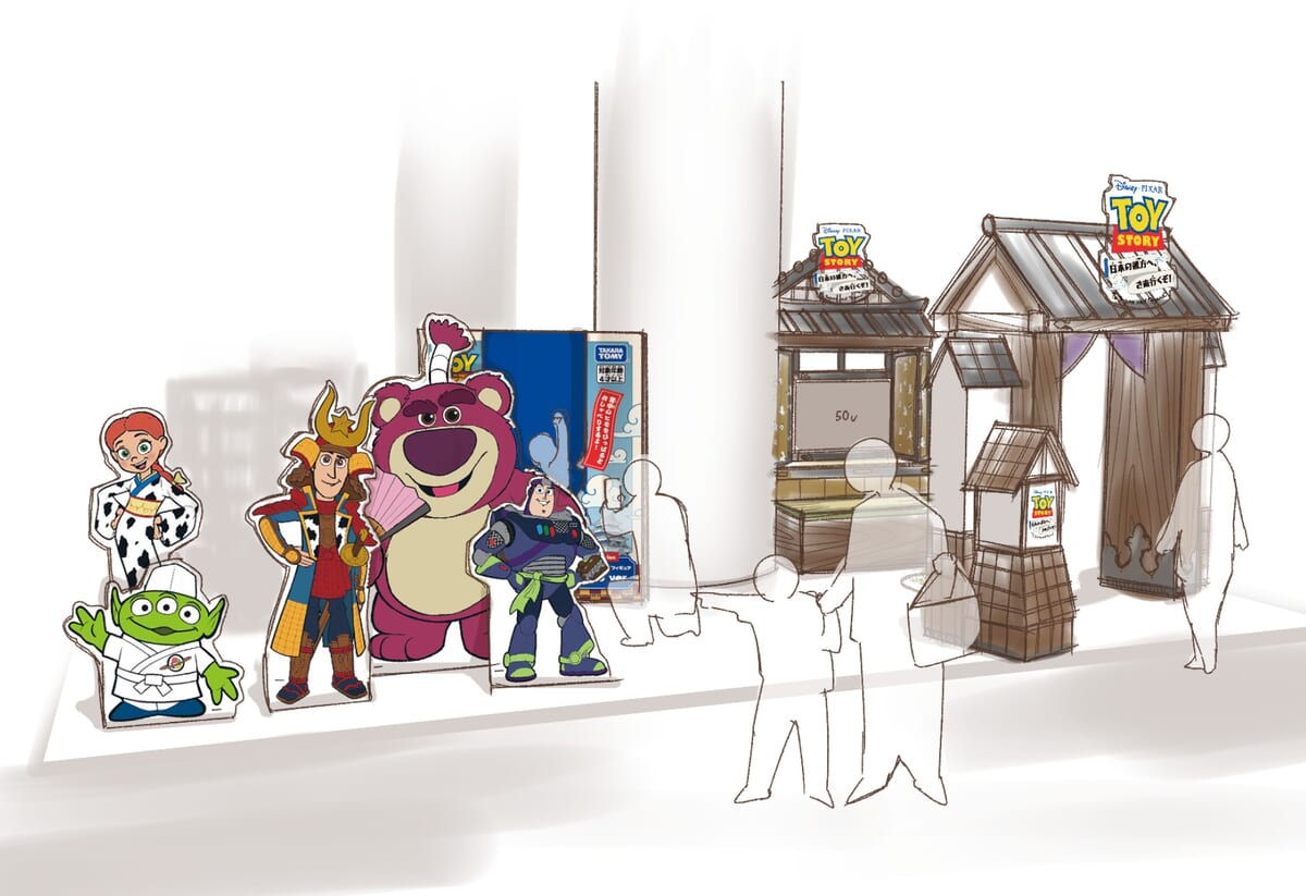 映画でもおなじみの「ウッディ」「バズ・ライトイヤー」「ジェシー」がそれぞれオリジナルデザインの侍や忍者、着物の姿で大活躍するストーリーで、アニメに登場する日本らしさを感じられるグッズが勢揃いします。