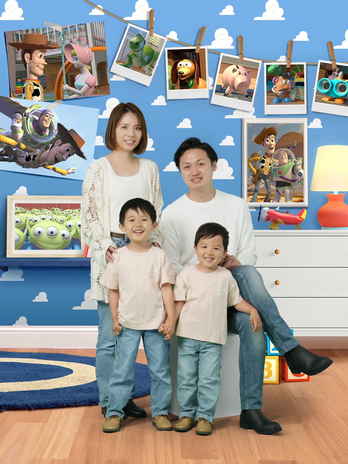 「トイ・ストーリー」の仲間たちと一緒に、家族揃って温かいひとときを楽しみながら心に残る一枚を残すことができます。