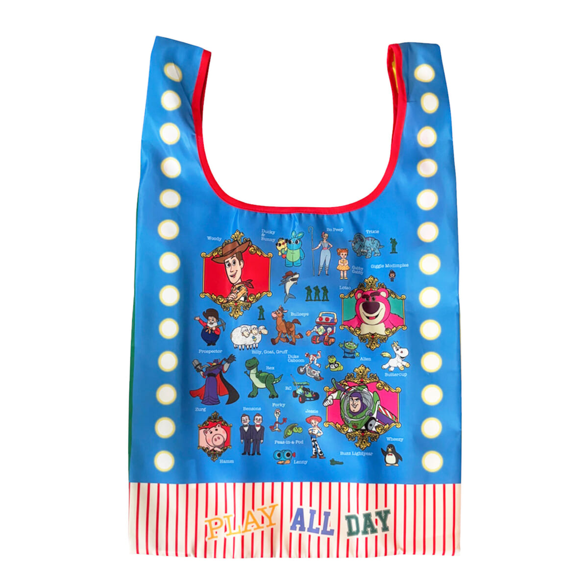 歴代の『トイ・ストーリー』キャラクターが描かれた30周年記念のスペシャルなデザインのエコバッグ。