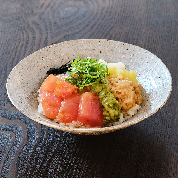 混ぜて食べることで、もち鮪と相性の良い具材が合わさり、おいしさが際立ちます。