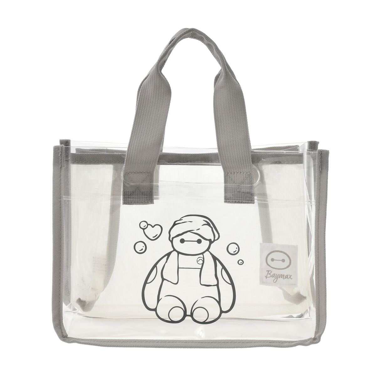 お風呂上りのかわいい「ベイマックス」を描いたクリアバッグと、通気性の良いメッシュ素材を使用したインナーバッグがセットになっています。