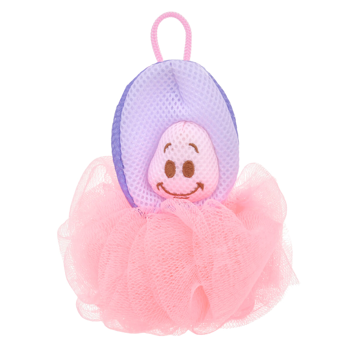 ネットをボール状に仕上げたスポンジに「ベイマックス」のお顔形スポンジを合わせた、ユニークでかわいいボディ用バススポンジ。