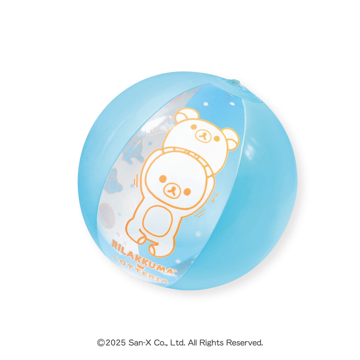 「リラックマ」の秘密である“きぐるみ”のイラストをあしらったデザインのビーチボール。