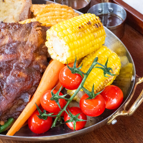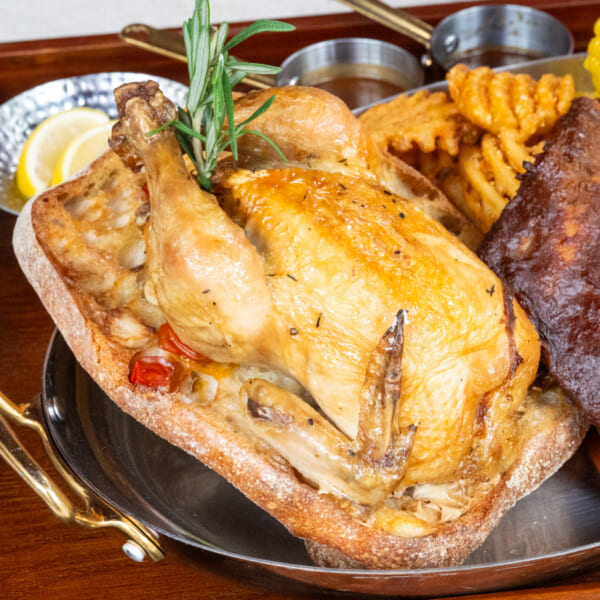 ジューシーなローストチキンとBBQポークリブは、ボリューム満点で20周年の思い出に残る豪華な食事が楽しめます。