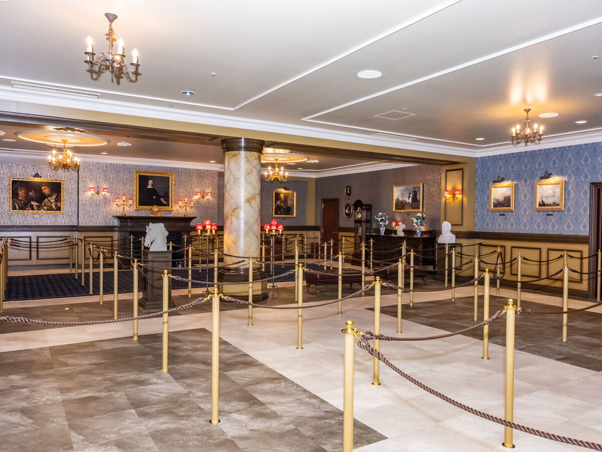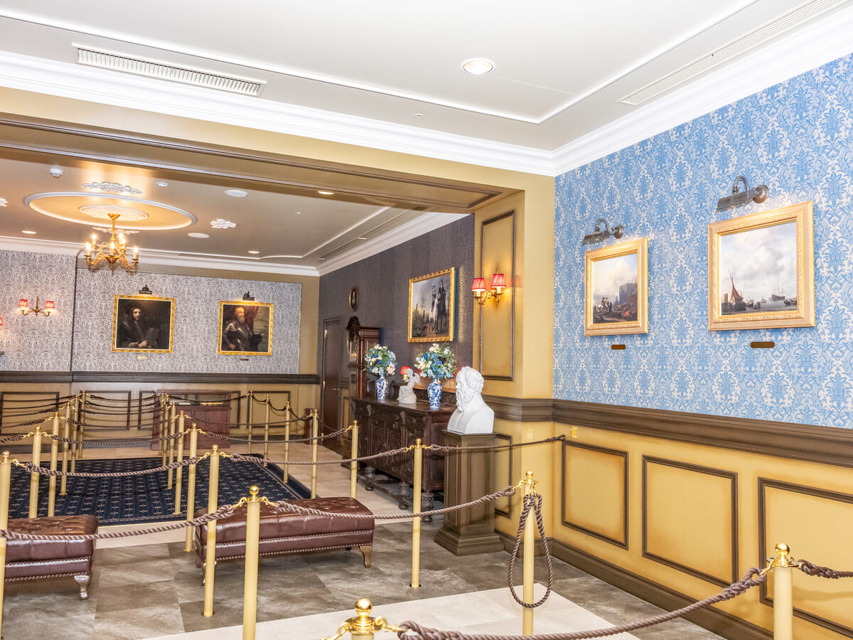 アトラクションの建物に「ブルー アンカー ギャラリー」と書かれているとおり、内部は美術館のような内装に。