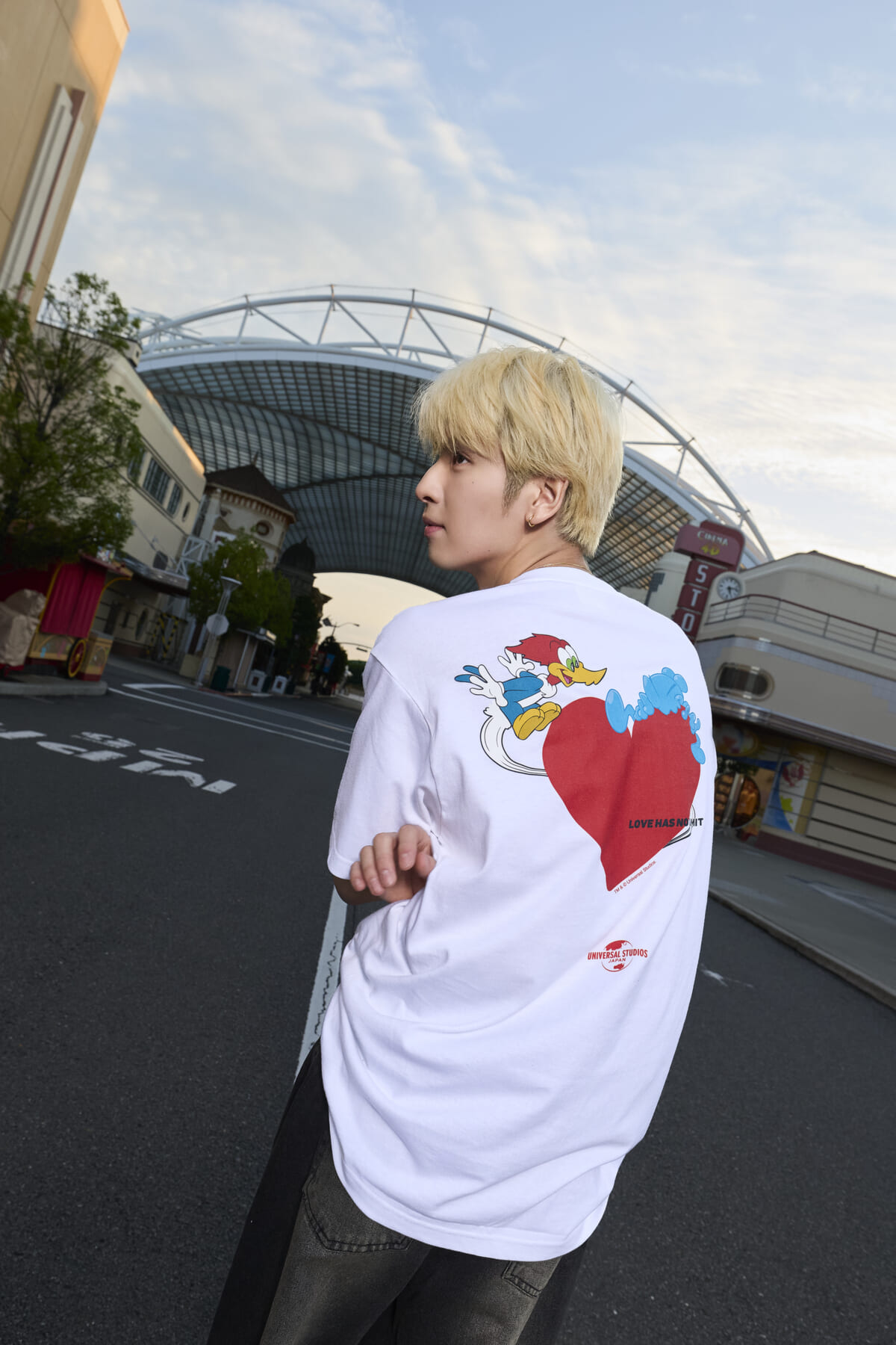パークで活躍するウッディー・ウッドペッカーと一緒におそろコーデを楽しむ姿など収めた特別ビジュアルが LOVE HAS NO LIMIT チャリティグッズ特設サイトにて、一挙に大公開されています。