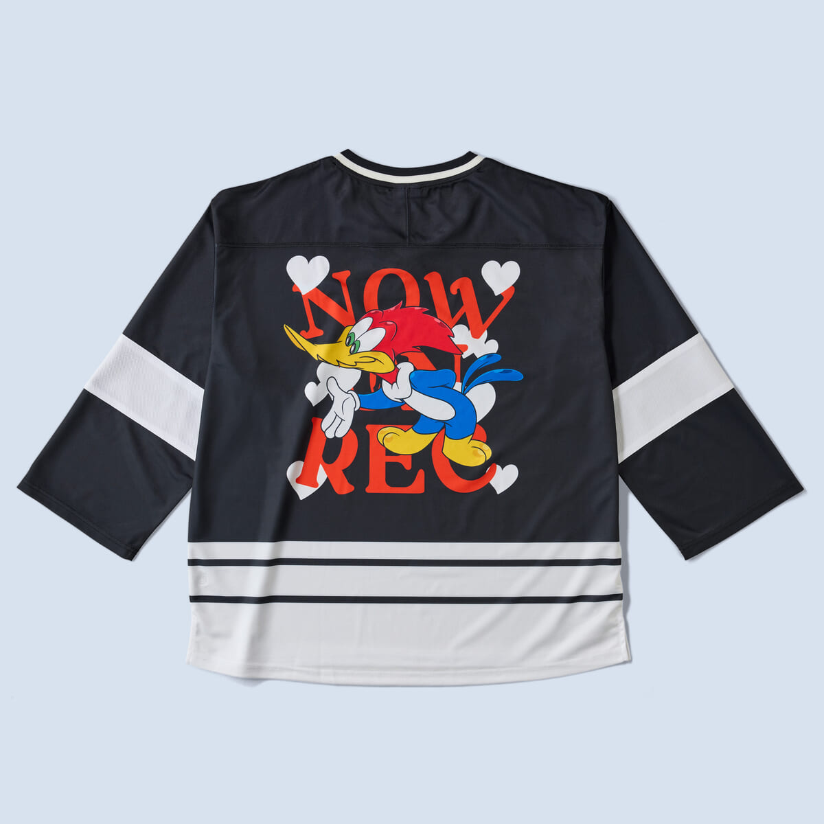 撮影では、今回のコラボレーションで主役の一人を務めたウッディー・ウッドペッカーも特注の定番Tシャツを着用し登場。