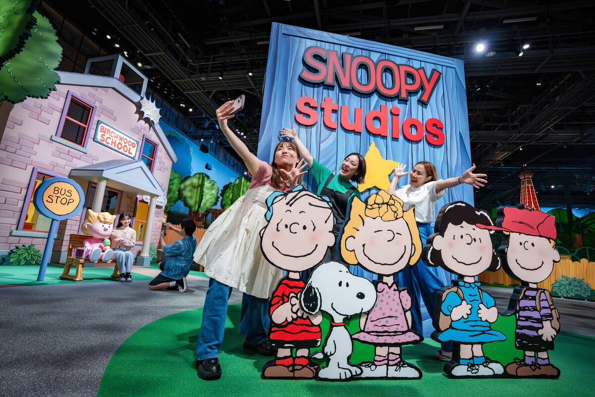 スヌーピーたちは、ハッピーな空気が満ち溢れる愛らしいダンスを披露した後、集まったファンと写真撮影で盛り上がり、進化した『スヌーピー・スタジオ』のオープンを祝いました。