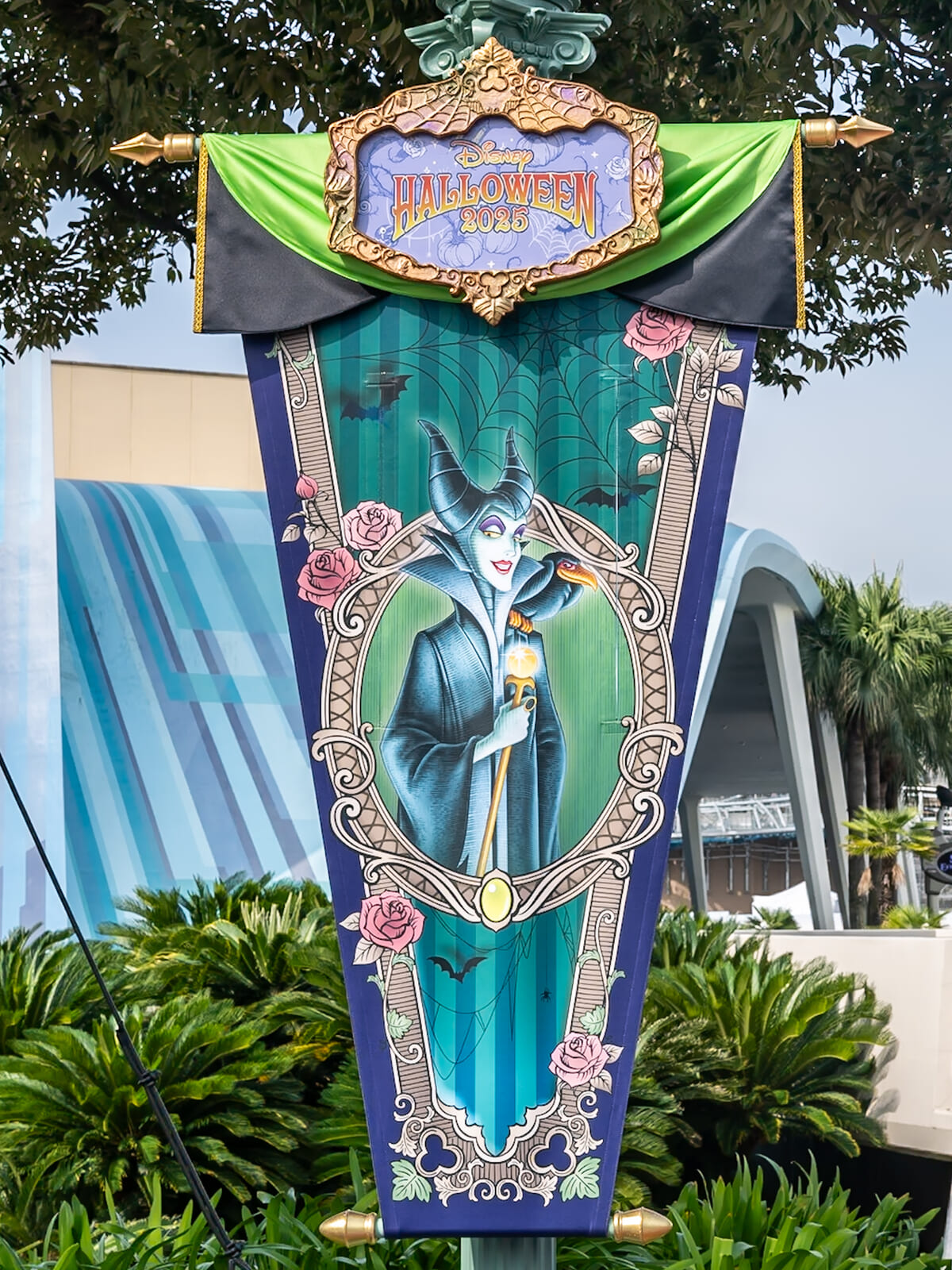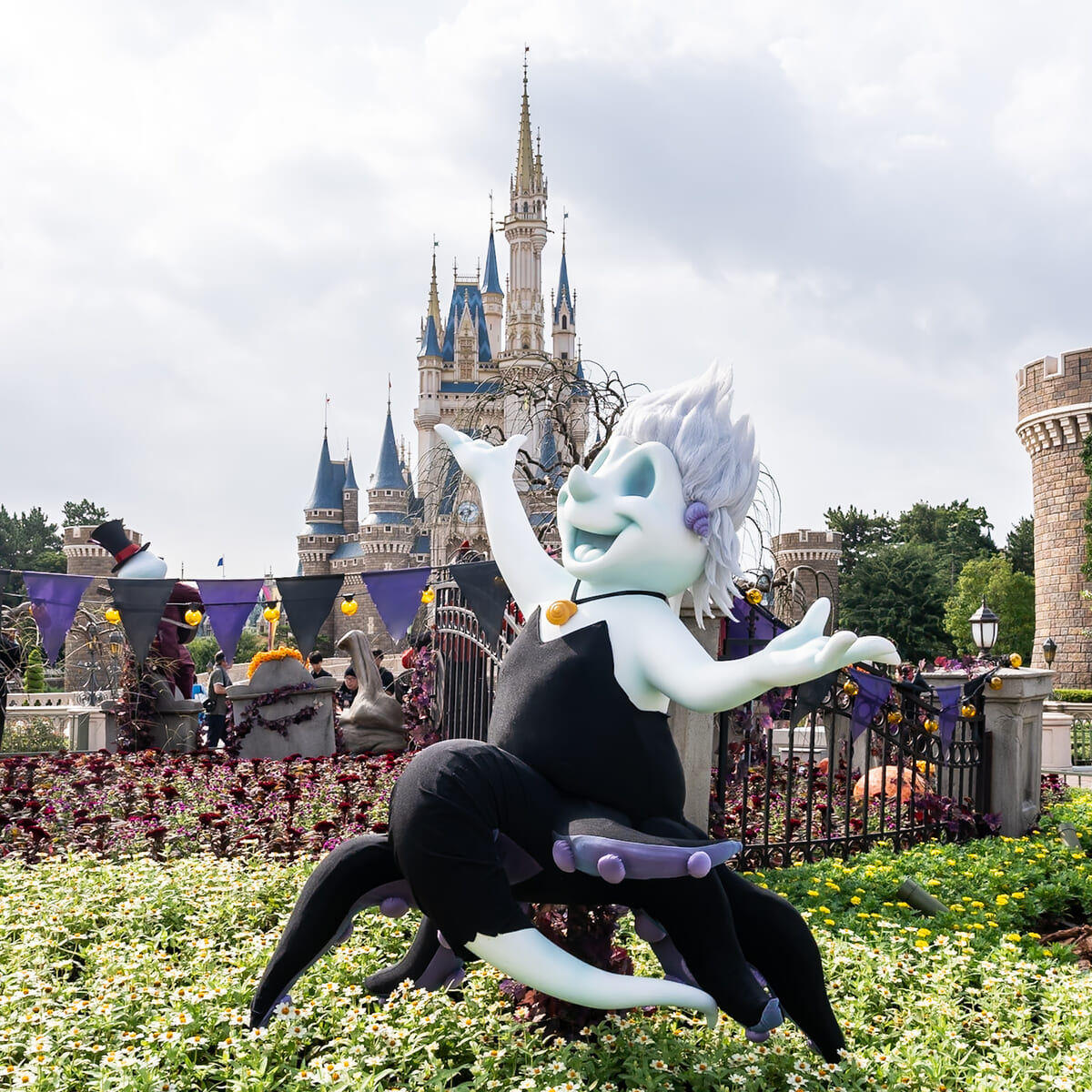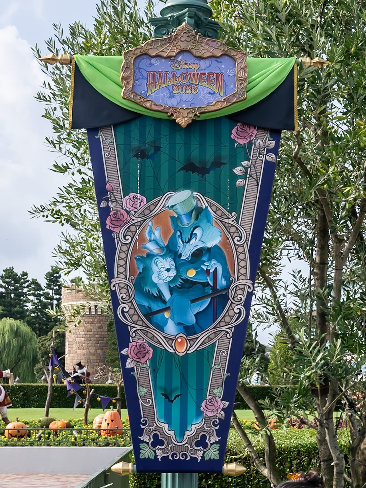 シンデレラ城周辺にはヴィランズが描かれたバナーが掲げられ、