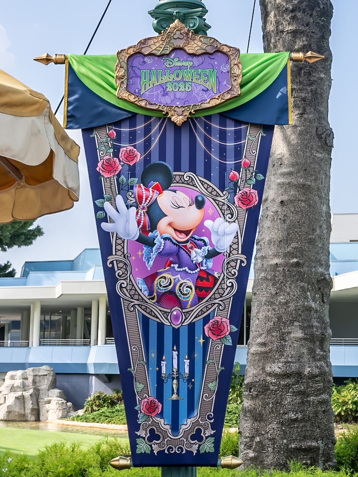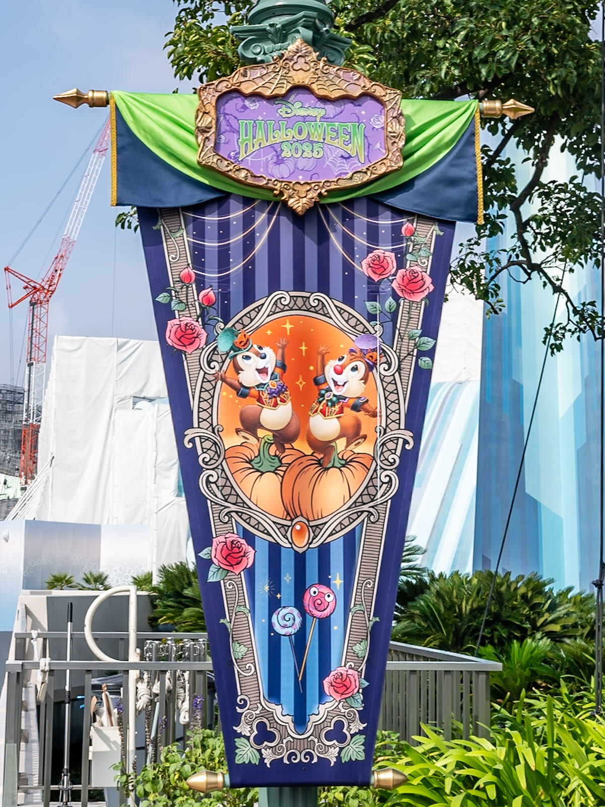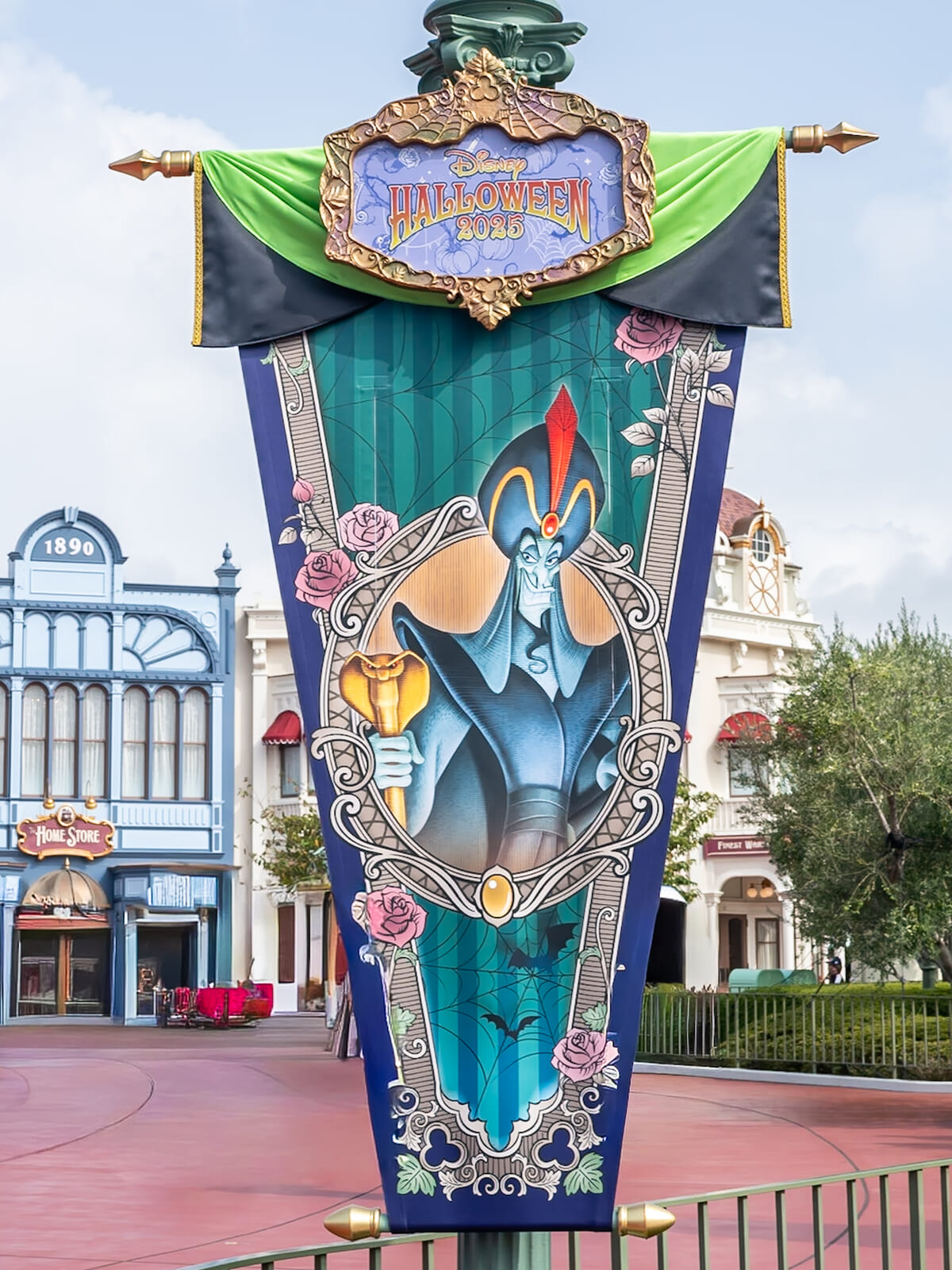 シンデレラ城周辺にはヴィランズが描かれたバナーが掲げられ、